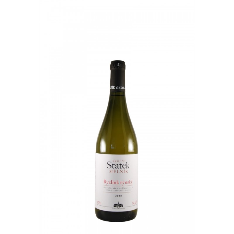 Ryzlink rýnský 2018, výběr z hroznů, Školní statek Mělník je intenzivní, výrazné bílé víno od renomovaného českého výrobce. Víno má světle žlutou barvu, aromatika je lehce ovocitá (meruňky, mandarinky). V chuti je určující rovnováha mezi zbytkovým cukrem a kyselinou, kořenitost a mineralita.